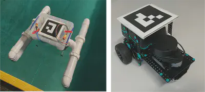 SmartCat x 5: Small differential thrust actuated catamarans used for teaching on “Maritime Robotics”. Equipped with 3 axis IMU and parsing position information using Qualysis and AR tag location feeds, endurance 2h.